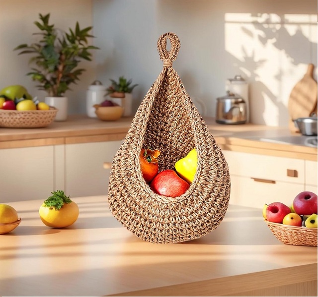 Cesta colgante de frutas, cesta colgante de pared, organizador de cocina, soporte para productos, cesta de macramé de almacenamiento para esposa, mamá,