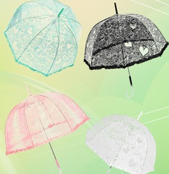 Palo de cúpula transparente Paraguas DE BODA Decoración de forma de jaula de pájaros Paraguas transparentes de encaje abierto automático para la lluvia que se lleva a cabo en el momento de la lluvia